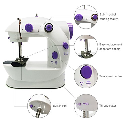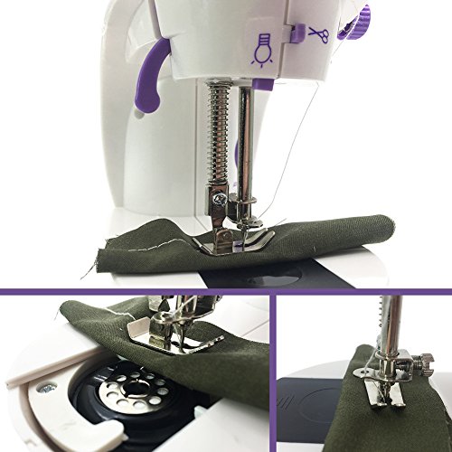 - ♣ Mini 2-speed sewing machine offers double thread and perfect stitch control hand switch or foot pedal to start.