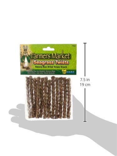 -. Binding : Misc. -. Brand : Ware Manufacturing -. EAN : 0791611031940 -. Feature : Sundried seagrass twists small pet chew toy / All natural chew toy / Sun dried in nature / Promotes clean and healthy teeth / Measures 4-1/2-inch width by 1/4-inch depth by 7-inch height / Your Pets Will Love to Chew These Savory Sun Dried Grass Snacks! / All Natural Sun Dried Sea grass That is Completely Safe For Your Pet / Encourages and Promotes Positive Chewing Behavior / Critters Will Chew, Nibble and Play, Helping Relieve Cage Boredom / Promotes Clean, Trim and Healthy Teeth / Measures 4-1/2" Width X 1/4" Depth X 7" Height -. IsAutographed : 0 -. IsMemorabilia : 0 -. Label : Ware Manufacturing Inc. -. Manufacturer : Ware Manufacturing Inc. -. Model : 3194 -. MPN : 3194 -. NumberOfItems : 1 -. PackageQuantity : 1 -. PartNumber : 3194 -. ProductGroup : Pet Products -. ProductTypeName : PET_SUPPLIES -. Publisher : Ware Manufacturing Inc. -. Size : N/A -. Studio : Ware Manufacturing Inc. -. Title : Ware Manufacturing Sundried Seagrass Twists Small Pet Chew -. UPC : 791611031940