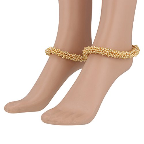 Grace your ankles with this designer pair of traditional anklets . This gold plated jewelry has an embellishment of beads with the excellent finish.
