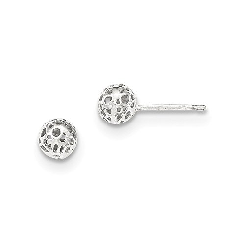 Solid 14k White Gold Small Fancy Ball Post Earrings (5.5mm x 5.5mm)
