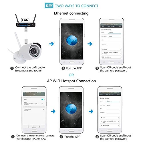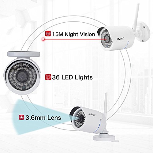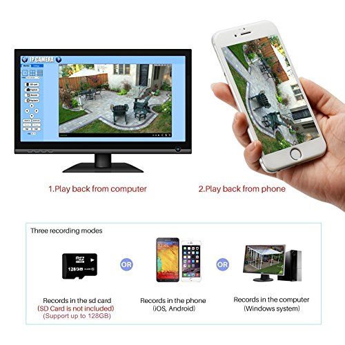 -. Feature : 1-3 Minutes to finish whole setting: 1, power on ip camera, connect ethernet cable, download the app. 2, The app will pick up the camera automatically, done! / Full 720p HD image quality-you can see more clear and detailed image with this high resolution camera.IR Night Vision-See what's happening in the dark with automatic infrared lights.Up to 80ft night vision.Weatherproof Camera Housing-You can install the cameras outdoor and indoor to cover your home in all aspects. / Supports remote viewing & recording from anywhere on desktop computers with standard web browsers and on smart devices such as iPhones and Android mobiles with included CAMHI Viewer app. Compatible with Windows PC and Apple Mac Web Browsers (IE, Firefox and Safari, Google Chrome) as well as iOS and Android mobile devices. / Support playback and recording via pc, phone and 128GB micro SD Card. / ieGeek Products are backed by a full, no questions, 12 months WARRANTY. We stand 100% behind our products and if you have an issue we will always help you out. We will ALWAYS make it right for our customers.