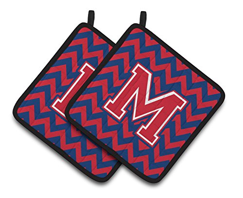 Caroline's Treasures CJ1054-MPTHD Letter M Chevron Pot Holders (1 Pair), 7.5" x 7.5", Yale Blue/Crimson