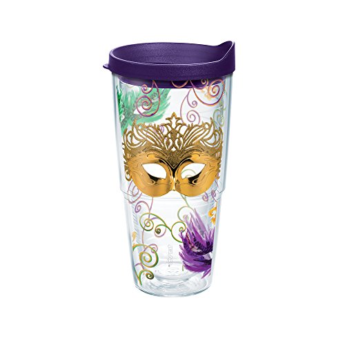 Tervis Mardi Gras Masks Wrap Tumbler with Royal Purple Lid, 24 oz, Clear