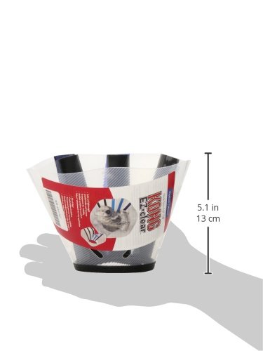 The KONG EZ-clear™ Collar is a safe and humane way of preventing animals from aggravating a healing wound or injury. It helps break the lick-bite, itch-scratch cycle gently without harsh restraints. The Velcro® straps are strong and make it easy for anyone to put on and take off. The neckline is padded for comfort. KONG EZ-clear™ Collars are available in five sizes: S, M, L, XL and XXL. • • Directions: Please measure the circumference, or distance around your dog’s neck before selecting a size. Select an EZ-clear Collar that is close in size to your pet’s regular collar. A properly fitted collar should have enough space to allow you to insert two fingers between the collar and your pet’s neck. Each EZ-clear Collar has unique Velcro® strips on the side of the collar. Simply place the collar snugly, but not tight enough to choke, around the pet’s neck. Line up the Velcro® strips to the properly positioned strip on the opposite side of the collar and press together. Adjust strips as necessary to get a comfortable fit. NOTE: Typically, pets require time to adjust to their EZ-clear Collar. Supervision is recommended. You may want to raise food and water dishes off the ground for easier access. CAUTION: Make sure that your pet cannot become stuck in tight places (under chairs, between furniture, etc.) If you have more than one pet, you should separate the pet with the EZ-clear Collar if left alone. Supervise all communal activity closely. REMEMBER: The EZ-clear Collar is not a toy. FOR CATS: Use indoors only. Supervise use.Feature