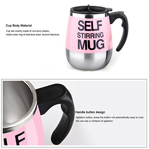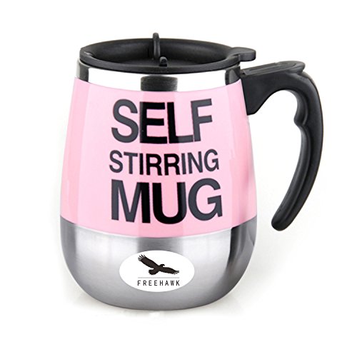Freehawk Hot Sale Novelty Automatic Electric Stirring Coffee Mug Double Layer Stainless Steel Self Stirring Auto Coffee Mugs Self Mixing Cup for Morning, Office, Travelling in Pink (450ml/15.2oz)