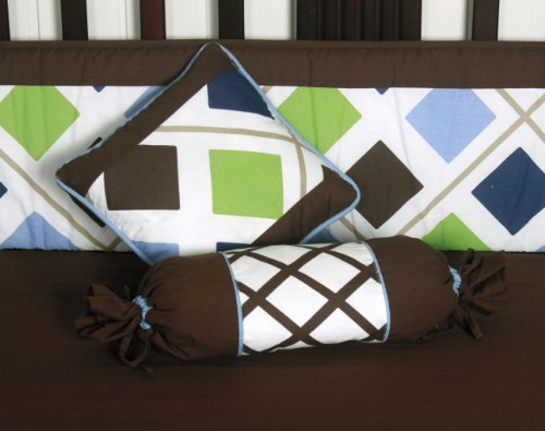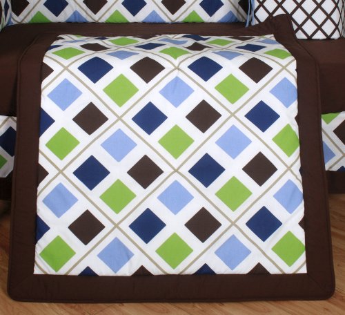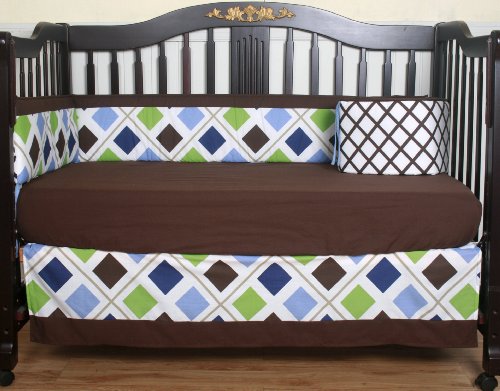 -. Title : GEENNY 13 Piece Crib Bedding Set, Blue/Brown Diamond