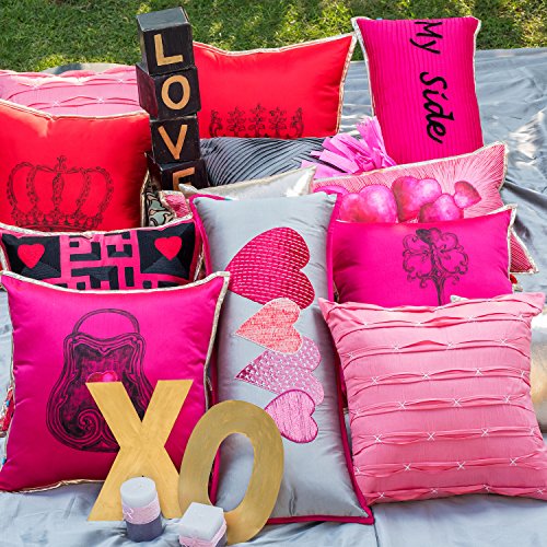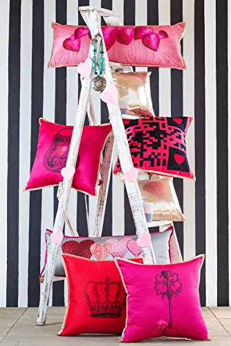 The Pink Champa Oversized Printed Princess Heart Square Decorative Throw Pillow Cover for Couch, 18x18, Hot Pink