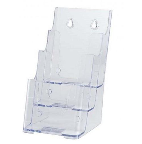 | インジェクション一体成型なので、デザインが美しく丈夫です。各種パンフレットやチラシ・カタログなどを展示・保管に便利です。背面にフック用の穴があるので、壁掛け用としてもご利用できます。 |