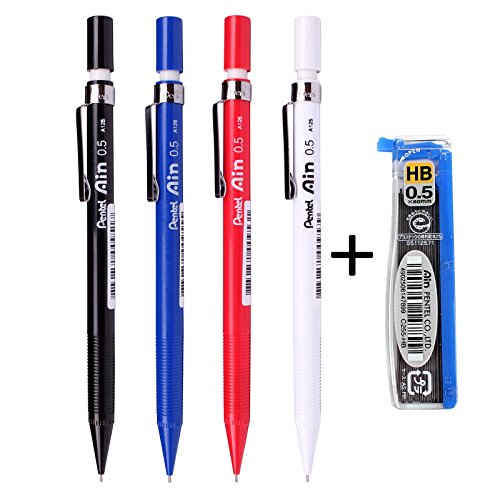 Pentel Ain A125-AC Mechanical Pencil for Drafting - 0.5 Mm Color Series (Pack of 4 Pens) +Hi-Polymer Lead 0.5mm (1 Tube 40 Leads)