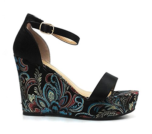 (Bamboo)/Women's/Sandals/DIRECT FROM USA/bamboo Women`s Fashion Floral Wedge Heel Ankle Strap Wedge Sandals Platform Shoes Scorpio-35s