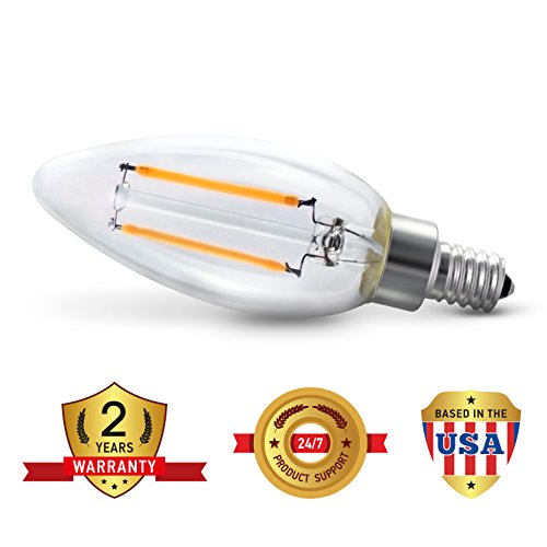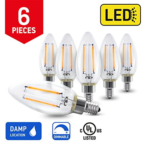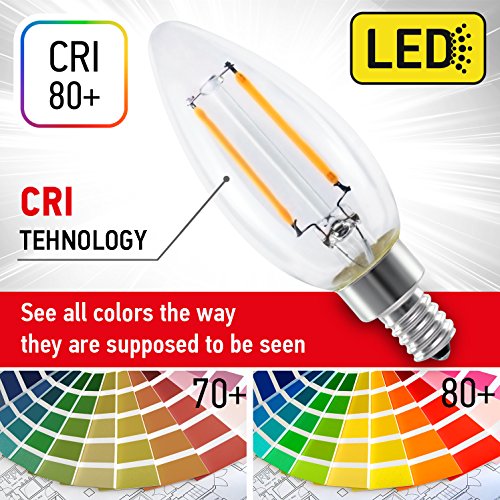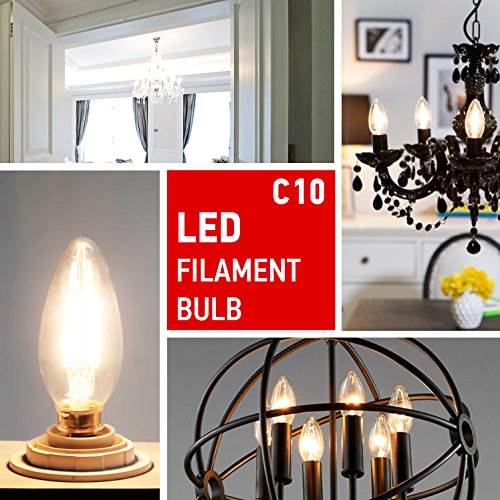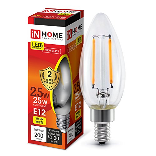 IN HOME LED FILAMENT BULB С10, 2.5W (25W Equivalent), 200lm, Dimmable, 2700K (Warm white), Candelabra Base E12, CR80+, (6 Pack), UL listed