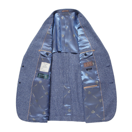 - 기본 라펠 디자인에 이면의 배색을 매치하여 멋스러움.