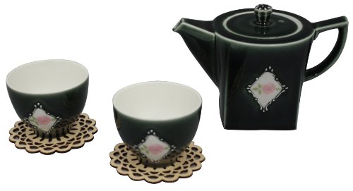 일본 그릇 산고우 도기 꽃과 레이스 티 세트 코스터부 6764-05