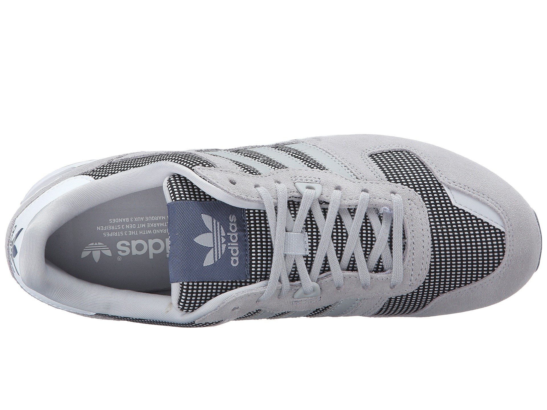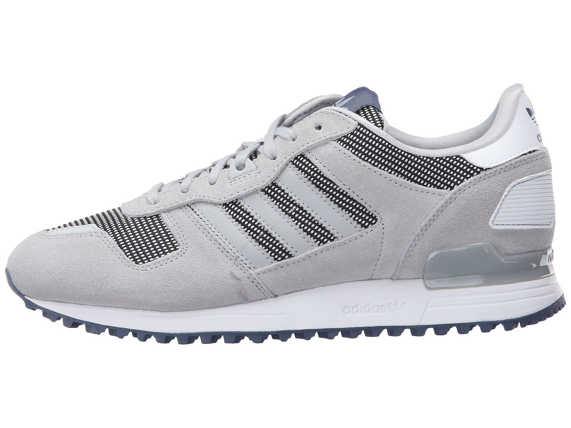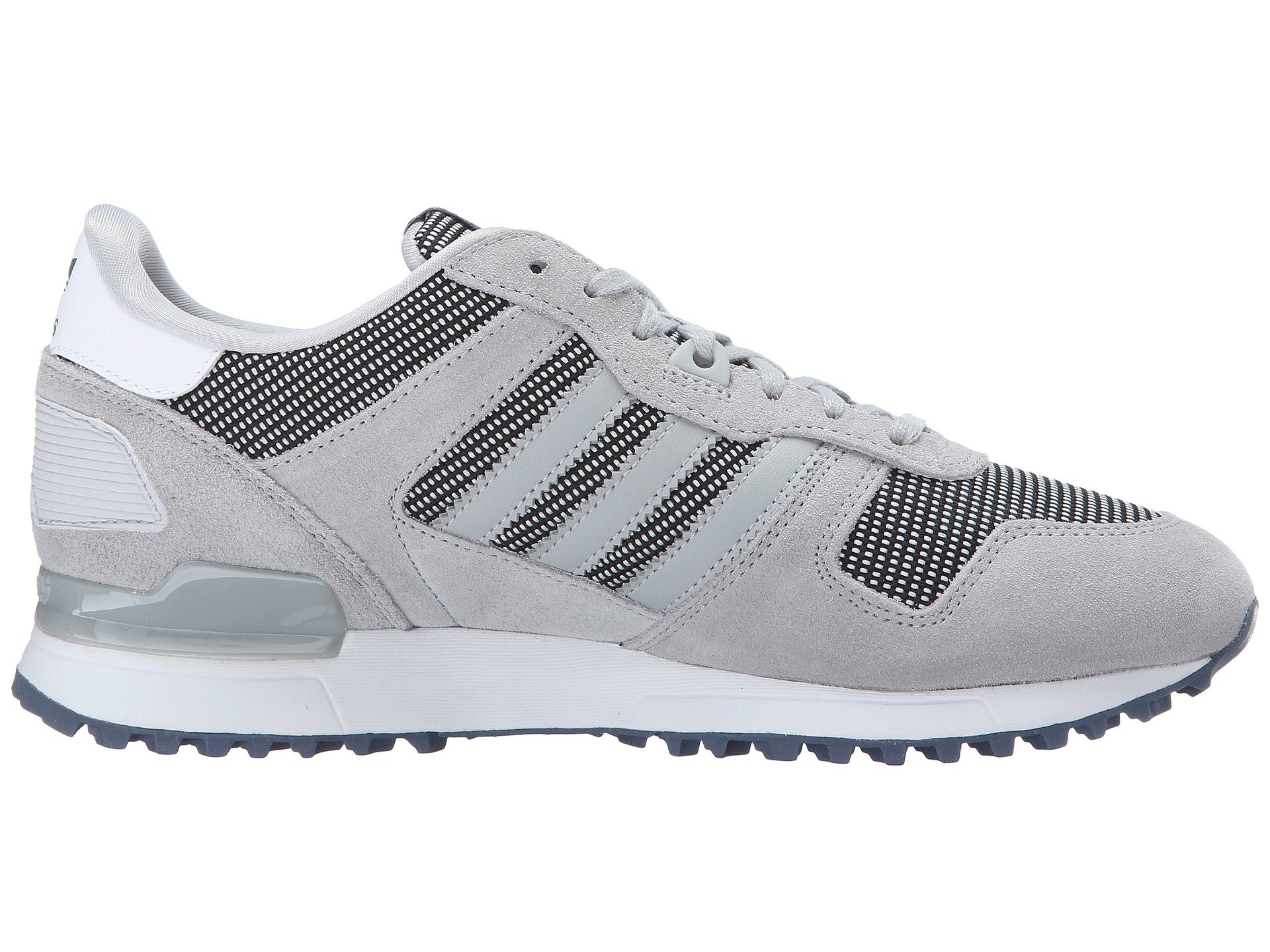 | Product Information SKU: #7396247Considered to be the sweetheart of the ZX line from adidas Originals?, the ZX 700 turns the classic 80s running shoe into a funky and comfy pair of sneakers she can rock with confidence!Combination nylon, canvas, and synthetic uppers.Foam-padded collar for comfort and support.Lace-up front provides a secure and custom fit.Breathable textile lining and a cushioned footbed for all-day comfort.EVA midsole for cushioning.Signature three stripes logo on lateral and medial sides, and adidas logo patch on tongue.TPU heel stabilizer unit helps add support.Grippy rubber outsole.Imported.Product measurements were taken using size 9, width B - Medium. Please note that measurements may vary by size.Weight of footwear is based on single item, not the pair.Measurements: Weight: 10 oz |