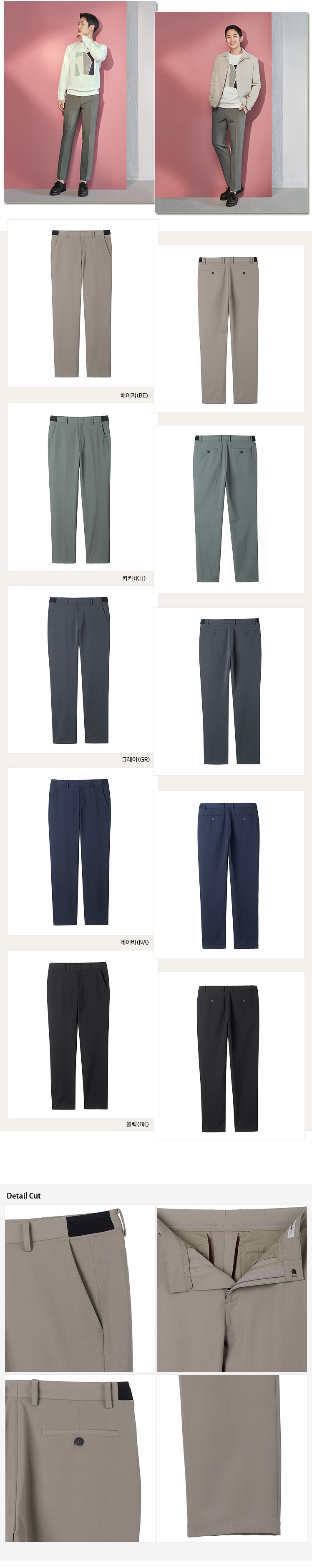 - T/R 투웨이 스판 소재의 크롭테이퍼드 핏 팬츠로 사이드밴딩 디테일을 사용해 허리에 편안한 착장감을 더한 아이템입니다. 칼라웨이가 다양해 활용도가 높고 스타일링에 용이합니다.