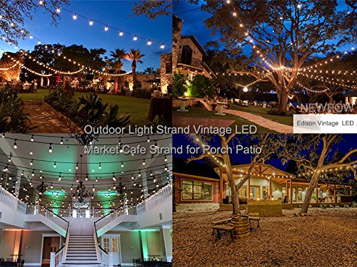 - Newpow Outdoor Light Strand has solved the problems that often happen on the traditional tungsten filament bulbs, such as easy disintegration of the filament, dim glow, short life span, flashing, high power consumption, while retaining the warm amber glow. NEW ENERGY SAVING STYLE & WARM AMBER GLOW.