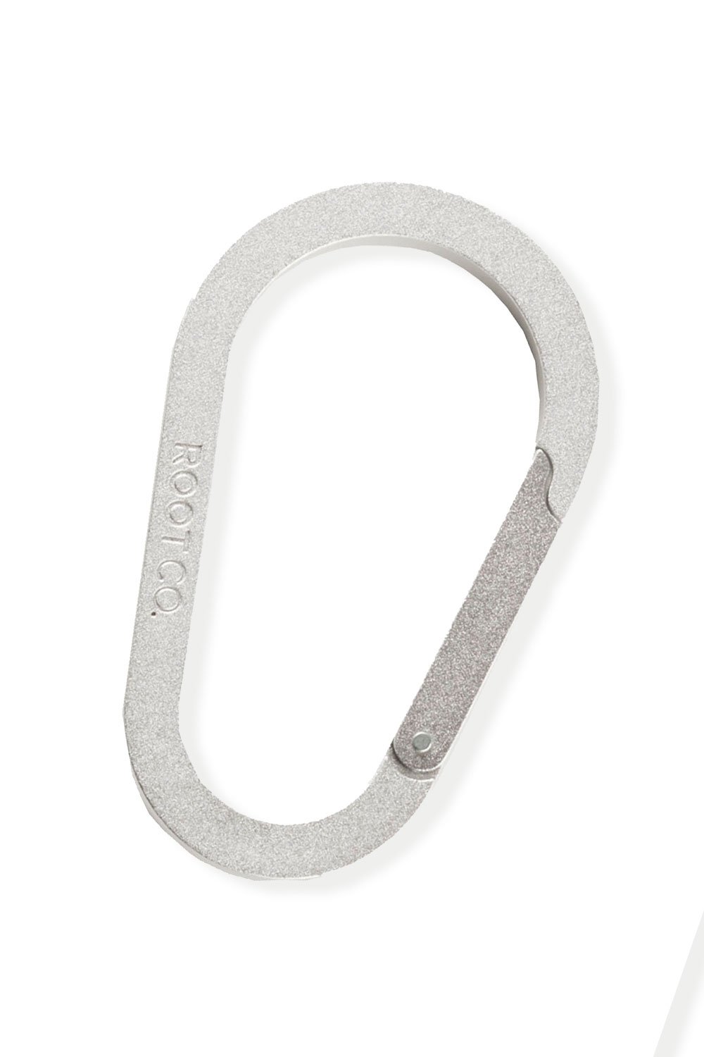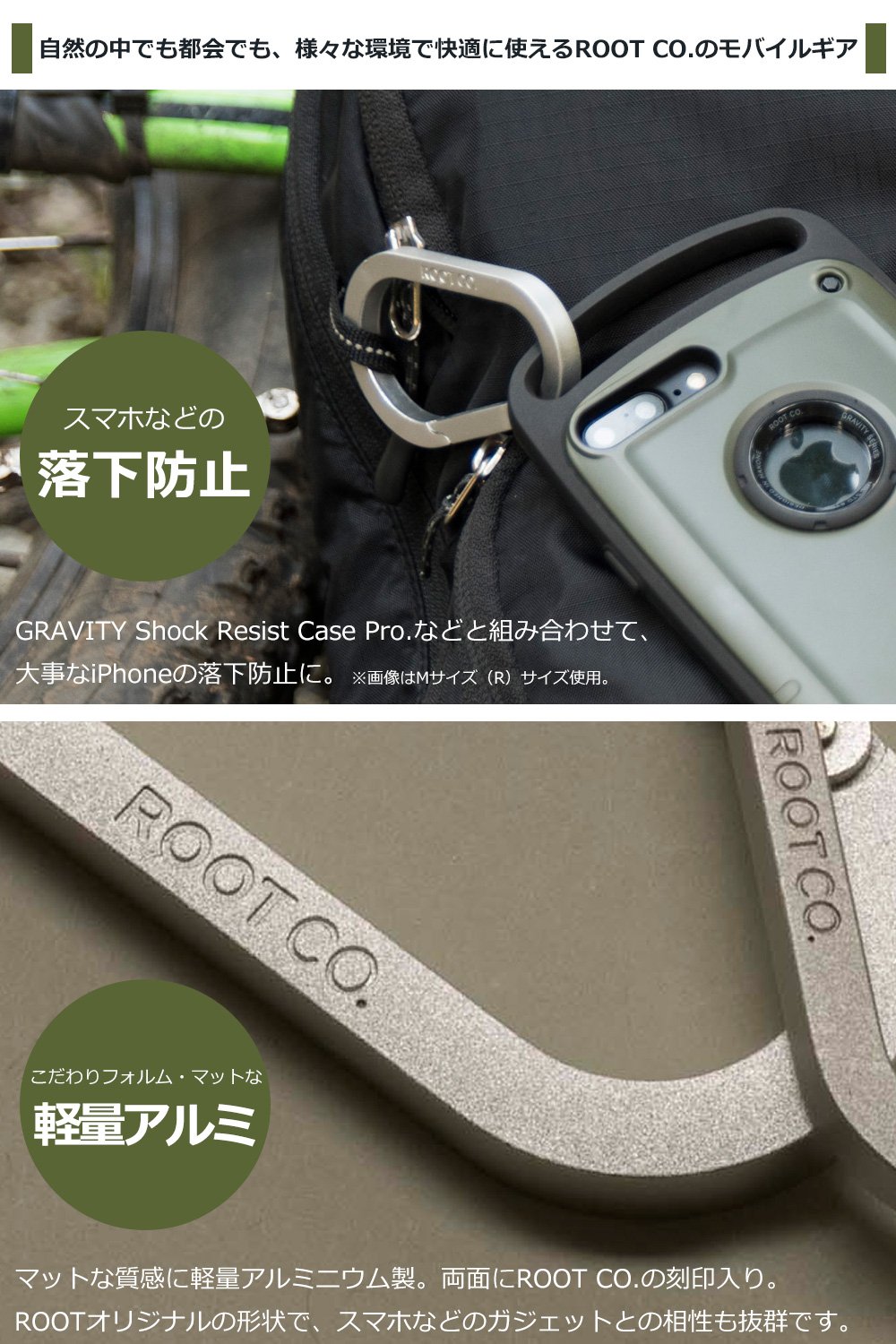 ALUMINIUM (made of aluminum) It becomes an aluminum carabiner of a mat texture, and the engraved "ROOT CO." Is entered on both sides.