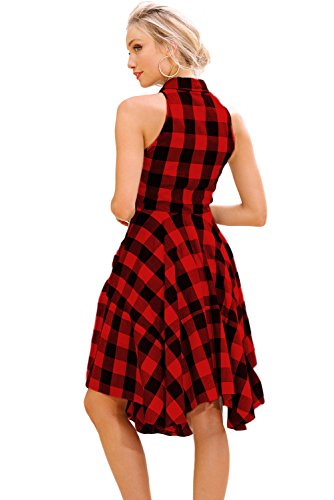 Bdcoco Women's Sleeveless Plaids Irregular Hem Casual Shirt Dress>Color:Black and White Plaid,Blue and White Plaid,Red and Black PlaidStyle:Casual, SexyOccasion:Any Summer OccasionRegular Size:Small Medium Large X-Large(size chart in the last picture) Notes:1.Measurement of the item lying on the table may cause 1-3cm difference,Please view the details of the size information before your purchase.2.The real color of the item may be slightly different from the pictures shown on website caused by many factors.Feature