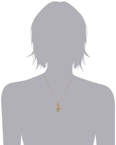 A classic religious medal, this pendant necklace is crafted in two-tone 14k yellow and white gold. The contrast between the metal colors emphasizes the detail and shine of this sentimental pendant.