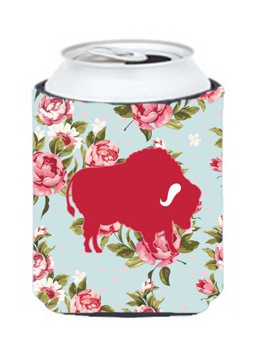 Buffalo Shabby Chic Blue Roses Can or Bottle Beverage Insulator Hugger BB1127