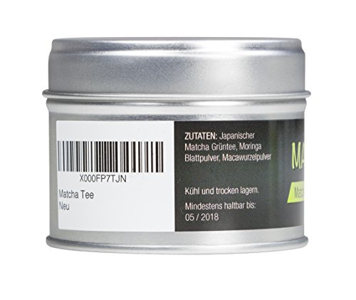 -. Feature : Matcha küsst Moringa und Maca: Die schlaue und einzigartige Teepulvermischung aus Matcha, Moringa und Maca / Ihr Wunsch: Schnelle Gewichtskontrolle, Energie und Vitalität steigern und Stoffwechsel anregen / Kann die Verdauung anregen und beim Abnehmen helfen (In Verbindung mit einer kalorienreduzierten Ernährung und Bewegung) / 30g Teepulvermischung Hergestellt unter höchsten Qualitäts-Standards in Deutschland / Auch geeignet für die Zubereitung von Matcha Latte, Cocktails, Smoothies, Müsli, Milchshakes