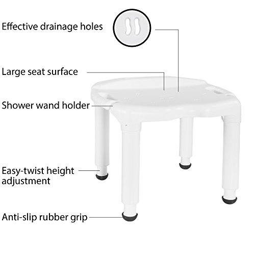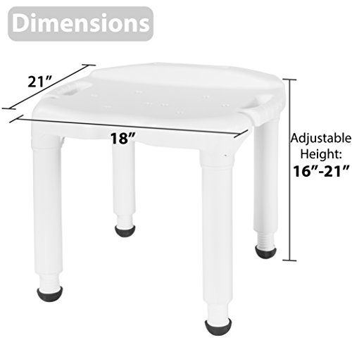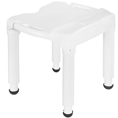 Studio : Carex Health Brands Publisher : Carex Health Brands Binding : Health and Beauty Product Description The Universal Bath Bench without Back fits into virtually every tub or shower - whether at home or away. The extra-large seating area comfortably supports any individuals up to 400 lbs. It has a patented 'Exact -Level' height adjustment to customize to one's seating needs. The unique drainage holes on the seat surface is specially designed to eliminate water pooling in order to ensure a safe bathing experience for fall-risk individuals. It also features a convenient notch to hold your hand-held shower spray and keep it within easy reach. This bench is tool free and easy to assemble. 0