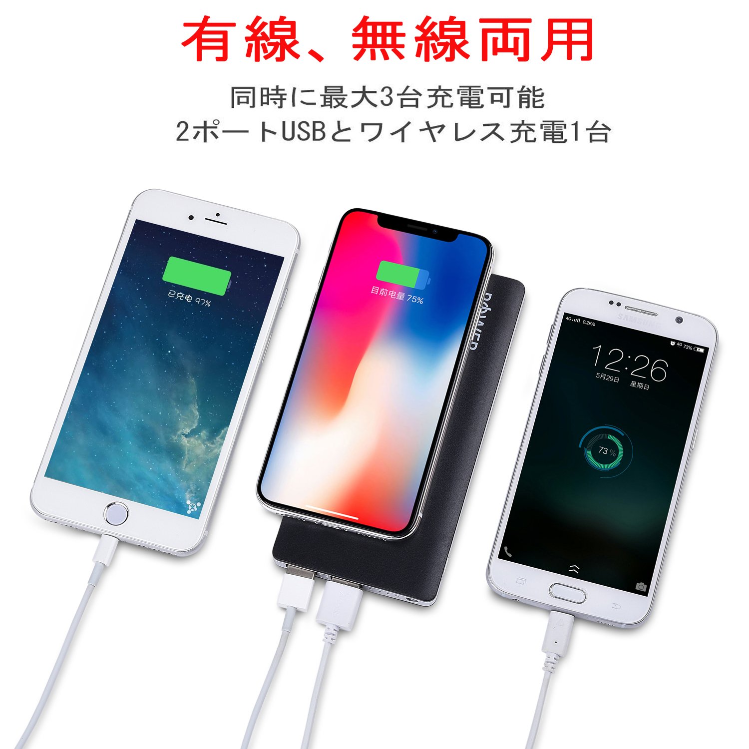 Wired Charging: Even if it is not a "Qi" compliant device, you can plug in the cable through 2 USB port, charge it immediately and use it as an ordinary mobile battery.