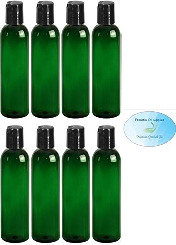 8 Ounce Green PET BPA-Free Plastic Empty Refillable Cosmo Round Bottles With Disc Caps (Pack of 8)