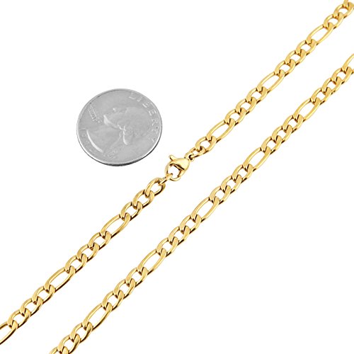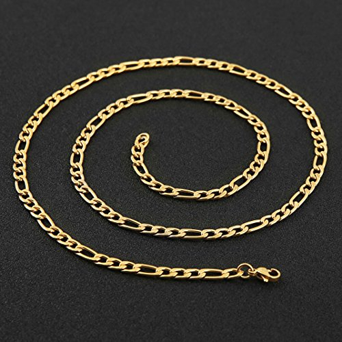 -. Title : HZMAN Men 24k Real Gold Plated Figaro Chain 5mm Stainless Steel Necklace