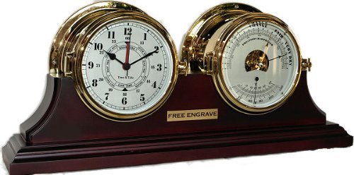 -. Title : 7" Porthole Tide Clock and Barometer Thermometer with Stand