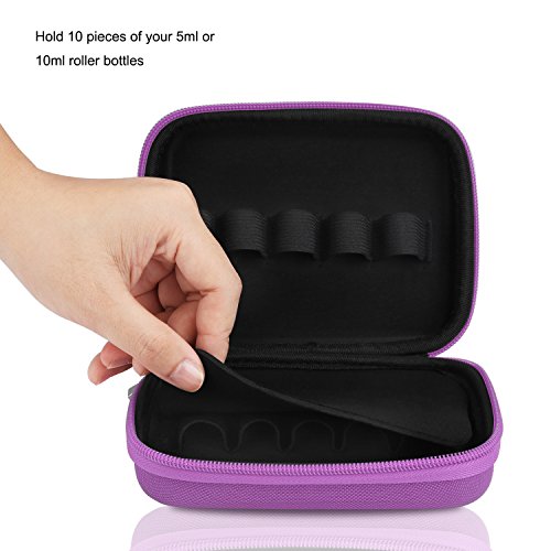 Essential Oil Carrying Case - Roller Bottle Case - Premium Protection for 10 piece 5ml/10ml Roller Bottles - Perfect Travel Storage Organizer with Free Metal Opener & Oil Pipettes (Purple)
