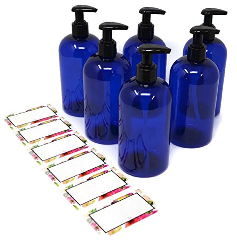 - DIY HANDCRAFTED PRODUCTS - Choose to enhance the look of your handcrafted lotions, soaps, essential oil blends and many other beauty products in our flattering, but affordable TRANSLUCENT BLUE pump containers. The DARK BLUE COLOR BLOCKS OUT THE LIGHT PRESERVING THE QUALITY OF YOUR PRODUCTS. Kick-it-up a notch and enhance the containers by adding our stunning FLORAL labels giving you that BOUTIQUE FEEL when crafting gifts or marketing to your Customers.