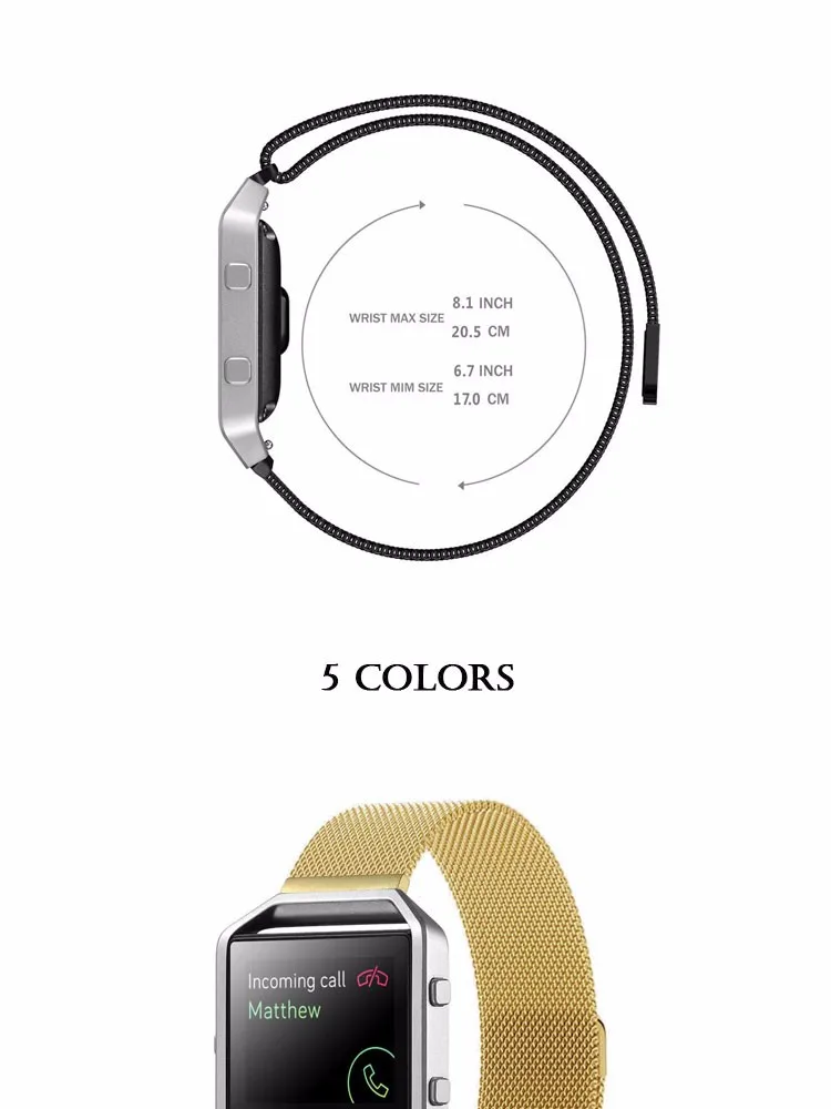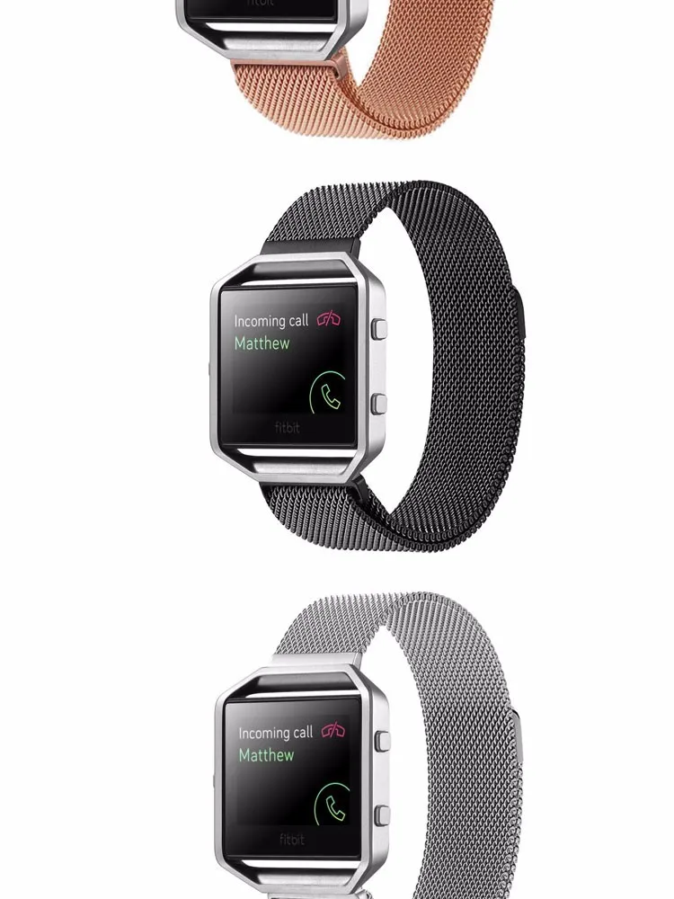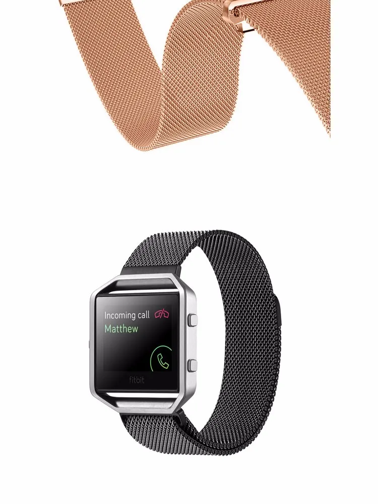 | [해외]럭셔리 실버 스테인레스 스틸 Milanese 자기 루프 남성 여성 핏 비트 블레이즈 시계 밴드 스트랩 팔찌 손목 연동 걸쇠 |