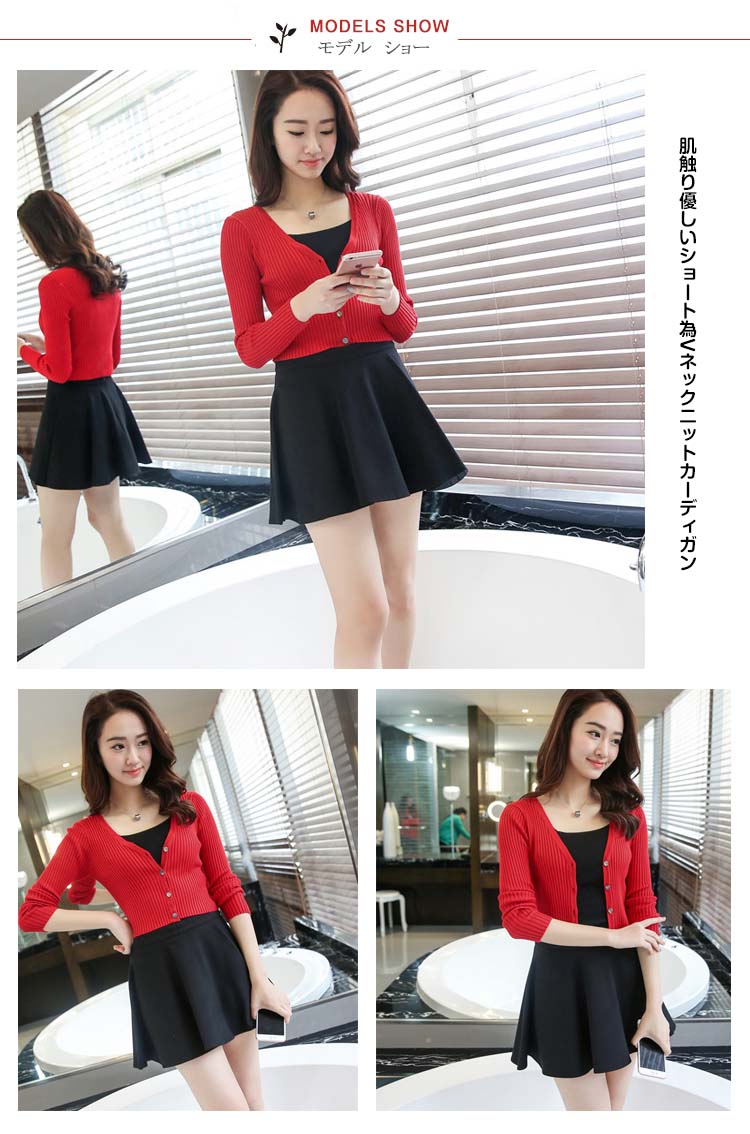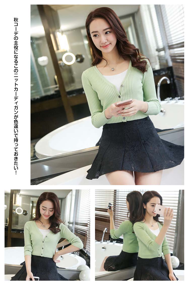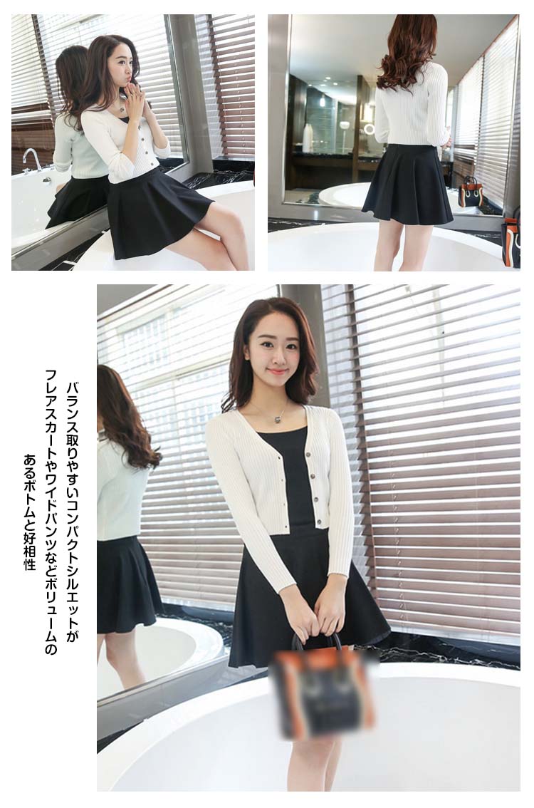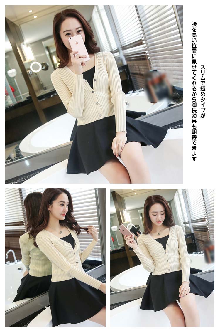 | 肌触り優しいショート為Vネックニットカーディガンバランス取りやすいコンパクトシルエットがフレアスカートやワイドパンツなどボリュームのあるボトムと好相性スリムで短めタイプが腰を高い位置に見せてくれるから脚長効果も期待できます秋コーデの主役になるこのニットカーディガンが色違いで持っておきたい! | |