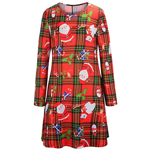 -. Title : Women's Christmas Full Print Long Sleeve Tunics Swing Dress (XXL, Bell & Santa Christmas-Red)