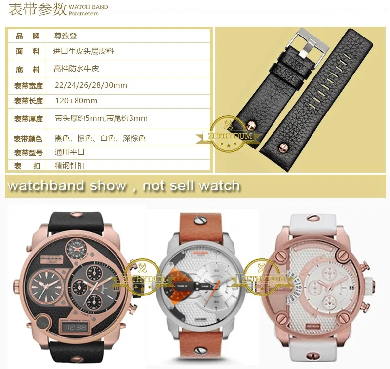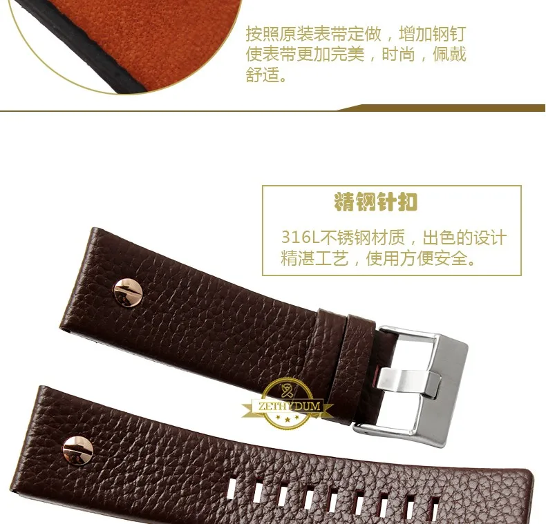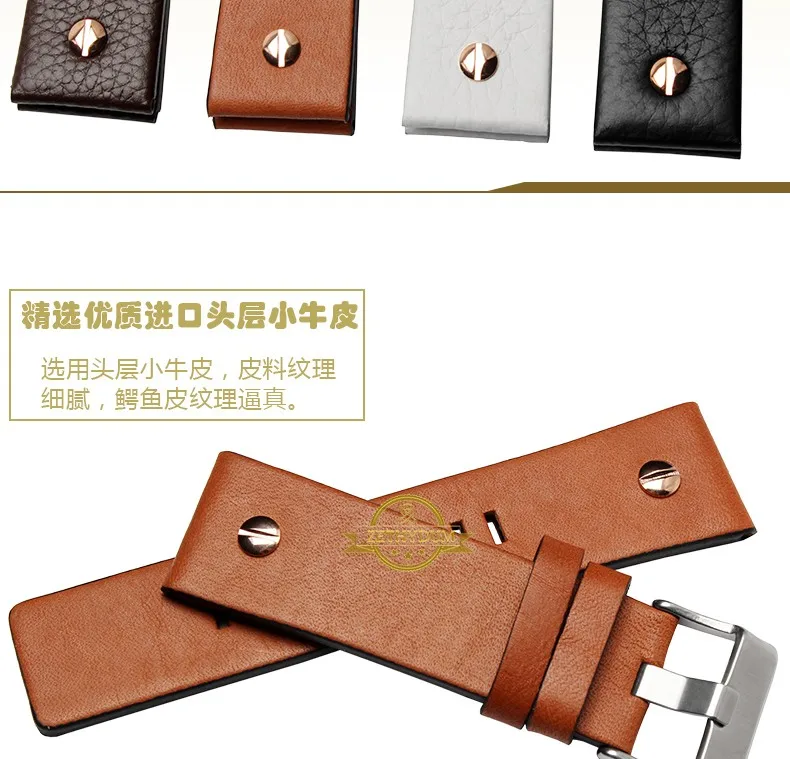 [해외]정품 가죽 팔찌 시계 스트랩 손목 손목 밴드 22 24 26 28 30 미리메터 로즈 골드 네일 DZ7271 7268 72827261