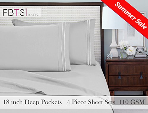Bed Sheet Sets Double Brushed Microfiber 1800 Series Egyptian Quality Bedding Sets 18 Inches Deep Pocket (Queen, Grey) 4 Piece Solid Pattern Hypoallergenic by FBTS Basic
