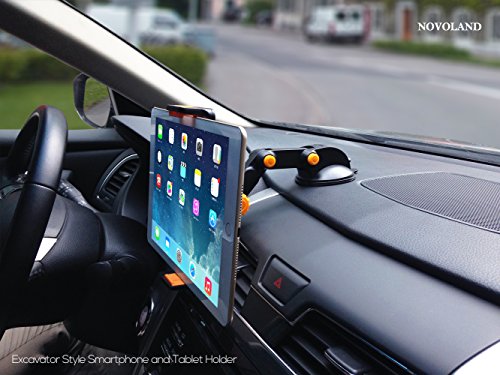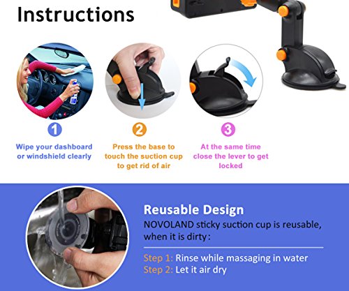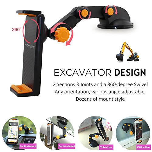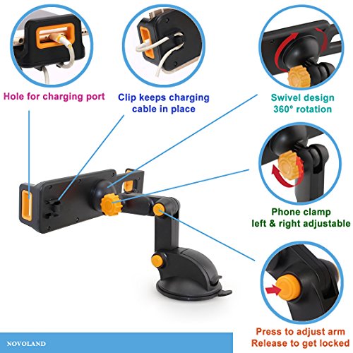 Car Phone Mount, NOVOLAND Universal Cell Phone Dash and Windshield Mount Holder Grip for Car, Long Arm Extendable Stand for Smartphone and Tablet