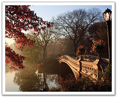 -. Title : JP London Peel and Stick Removable Wall Decal Sticker Mural, Central Park Forest Pond Bridge in Autumn, 24 by 19.75-Inch
