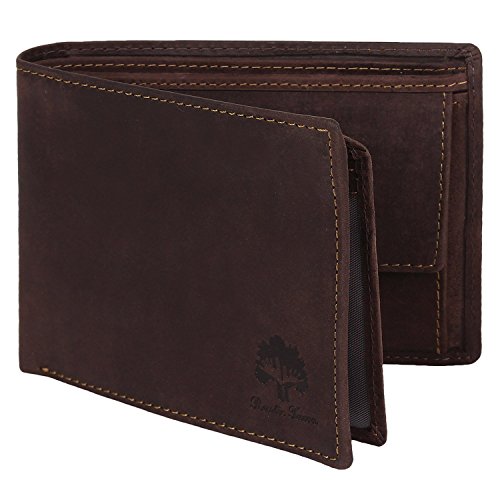 Handmade RFID Blocking Genuine Leather Bifold Zippered Wallets with Coin Pocket Designer Engraved Fashion with Card Pockets for Cash Bills By Rustic Town ~ Gift for Teen Boys Girls Men Women ( Tan )