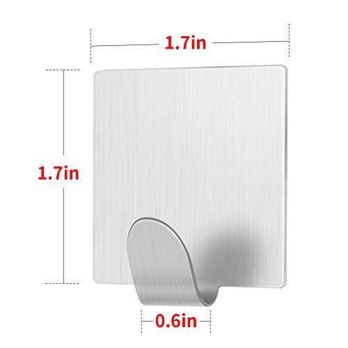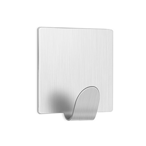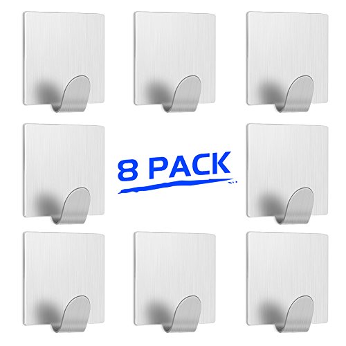 LuckIn Adhesive Hooks Stainless Steel Hook Heavy Duty Holders for Hanging Robes Towels in Kitchen Bathroom, Brushed Finish ( 8 Pcs)