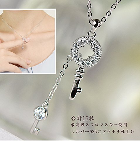 なんとも繊細なデザインのキーモチーフのネックレスが登場です。スワロフスキーをサークル上にあしらった鍵に、さらにチェーンでつながる可愛らしい小さな鍵。そのミニチュアタイプの鍵にはスワロフスキーを一粒。首元で揺らめくたび、2つの鍵が寄り添い、きらりと輝きます。