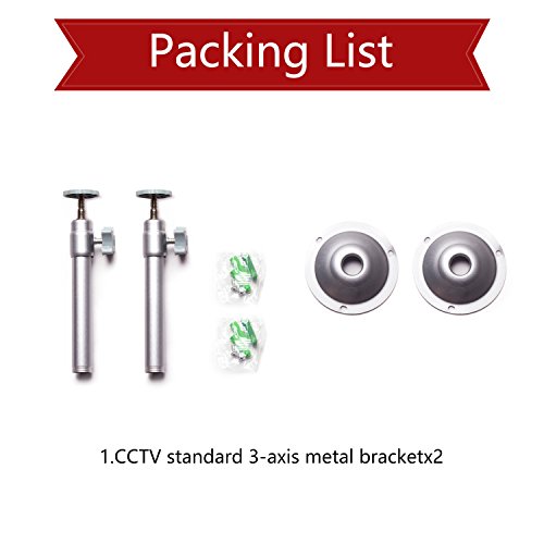 -. Feature : 2 pack SILVER surveillance mounting brackets for 2 CCTV security cameras / This CCTV camera mounting bracket can tilt 90 degrees, turn and rotate 360 degrees / Universal, versatile CCTV metal wall ceiling mounts with handle screw, easy to install and can be installed into any ceiling or wall / Heavy duty tooling makes it a reliable and secure camera stand for your surveillance cameras / 365-day, 7/24 tech support provided by IHOMEGUARD