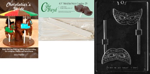 Cybrtrayd 'Mask Lolly' Miscellaneous Chocolate Candy Mold with 25 4.5-Inch Lollipop Sticks and Chocolatier's Guide