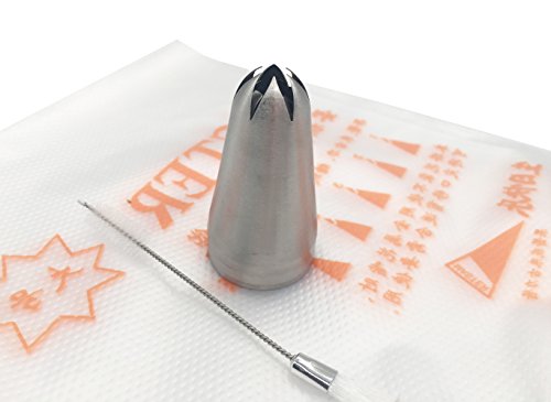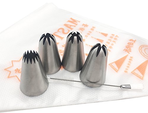 Cupcake Decorating Tips 14Pcs/set, KOOTIPS Classic Extra Large Stainless Steel Decorating Tips Closed Star Open Star French Plain 4Pcs Tips+ 10pcs Pastry Bag