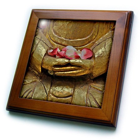 3dRose ft_107622_1 Buddhist Art, Buddha Figure Holding Flower Petals-Framed Tile, 8 by 8-Inch