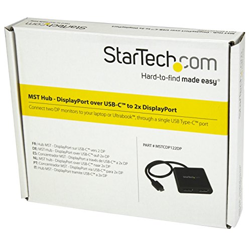Studio : STARTECH.COM Publisher : STARTECH.COM Platform : Windows 8 Binding : Electronics Product Description Connect two DP monitors to your laptop or Ultrabook, through a single USB Type-C port - this MST hub lets you connect two DisplayPort monitors to your USB-C computer. Mst Works on any Windows device with DP alt mode over USB Type-C such as models of Dell precision and Dell XPS Laptops. The MST hub is powered by?the?usb-c port so?you don't require an additional power adapter. This adapter Works with?USB Type-C devices that?pass?a DisplayPort video signal and it's also compatible with Thunderbolt 3 ports. The newest generations of Laptops are more portable than ever. Unfortunately, this could mean that you're left with fewer video outputs and confined to a small integrated screen. This MST hub solves these problems by letting you connect two independent displays to?a usb-c?port on your computer, which makes multitasking much easier. Using the MST hub, you can extend your desktop onto additional monitors and stream independent content to each display. This makes it easier to multitask and increase your productivity -- perfect for creating an easy-to-dock hot-desk solution with a wireless keyboard and mouse peripheral set. The hub also lets you mirror the same image onto multiple displays, for remote viewing applications such as digital signage. Mst technology uses your existing video card to minimize the use of system resources delivering Ultra HD 4K resolutions. 4K is supported by the latest a/V devices and offers four times the resolution of 1080p. Plus, because the MST hub can output high-definition 1080p, the MST hub is perfect for all high-resolution applications such as graphic design and CAD drawing.? with this MST hub, you can use separate DP?video adapters to connect HDMI, VGA or DVI displays,?for compatibility with all of your existing monitors. The supports DP 1.2 enabled systems, for seamless integration with your existing video equipment. 0