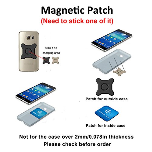 !!!!!!Not for the THICK PHONE CASE that over 2mm thickness, QI enabled phone need to stick the magnetic patch!!!!!!Specifications Material: ABS + Magnet + Silicone