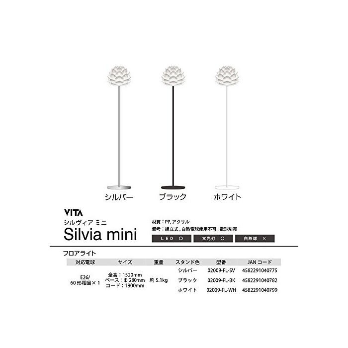 원본상품명: フロアライト 1 - シルヴィア ミニ - Silvia mini フロア(ホワイトベス) 【電球別】 VITA デンマク ELUX 02009-FL-WH 02009-FL-WH