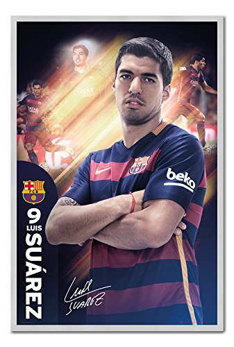 -. Title : Barcelona Luis Suarez 2015/16 Season poster Magnetic Notice Board Silver Framed - 96.5 x 66 cms (Approx 38 x 26 inches)